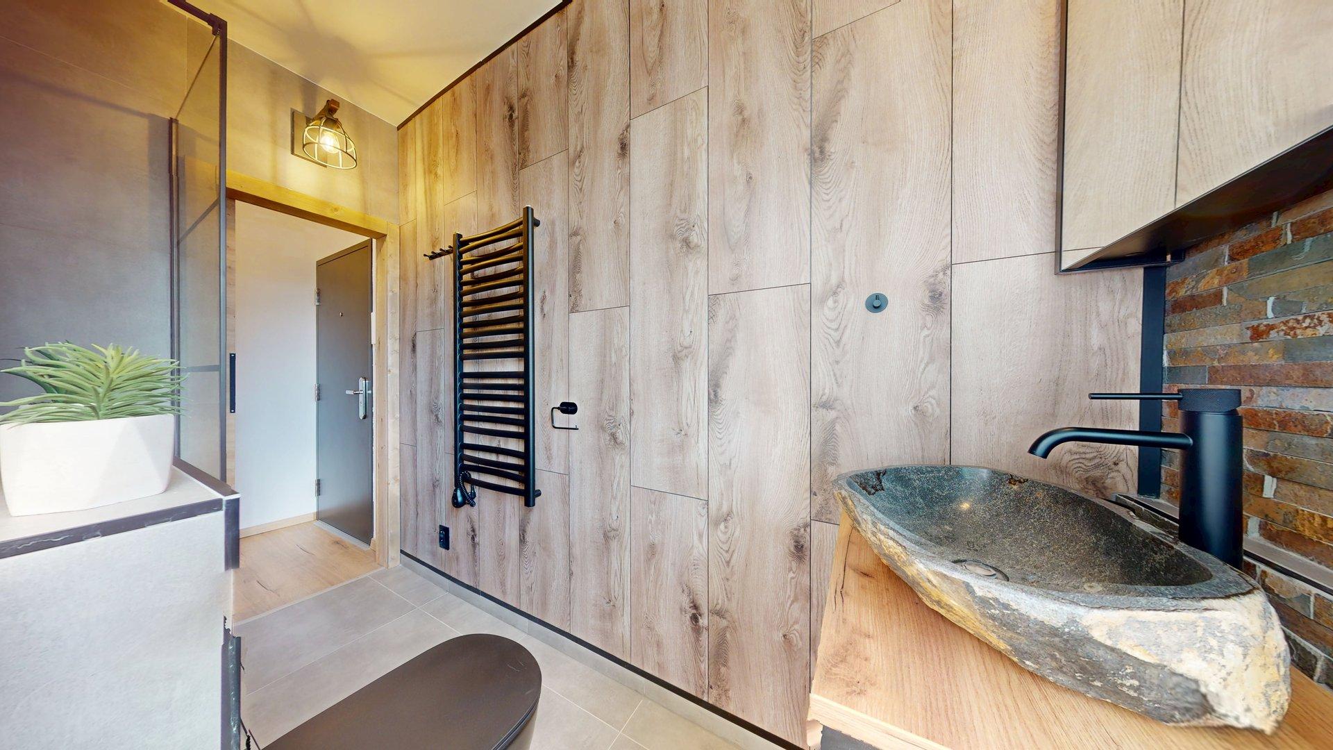 Byt je ladený v modernom pánskom štýle, pôsobí elegantne a zároveň príjemne.