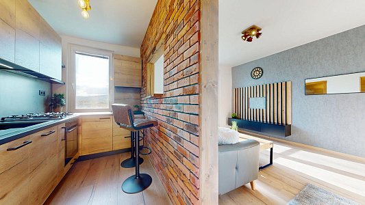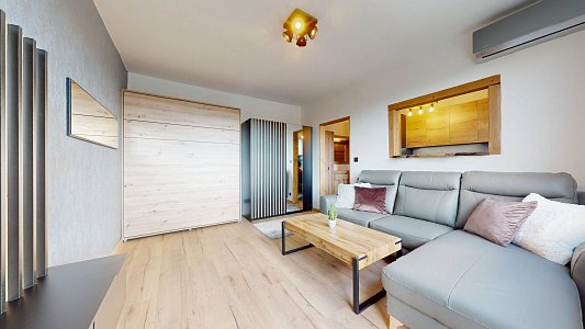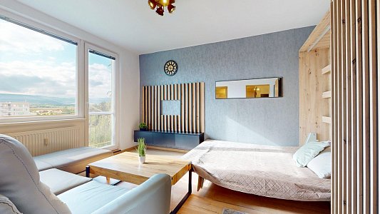 Tento štýlový 1-izbový byt s balkónom a výhľadom vás zaujme premysleným riešením a nadčasovým dizajnom.