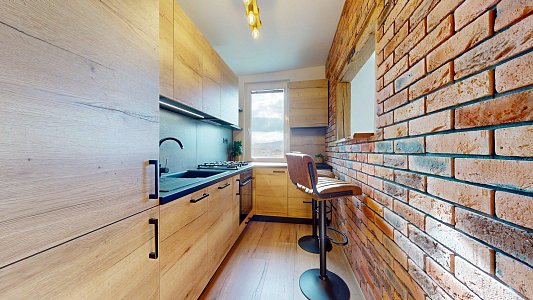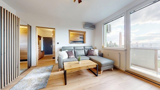 Byt s výmerou 28,78 m² + balkón cca 3 m² prešiel kompletnou rekonštrukciou v roku 2024–2025 – nové rozvody, elektroinštalácia, podlahy, kúpeľňa, kuchyňa na mieru, bezpečnostné dvere aj klimatizácia.