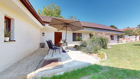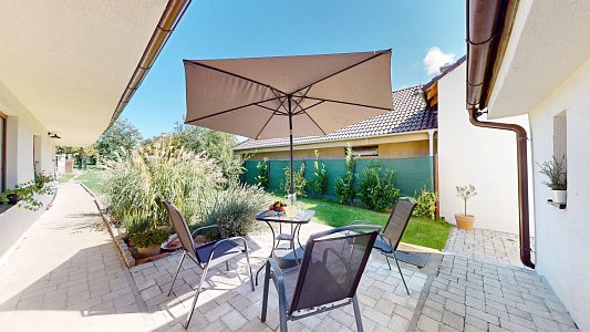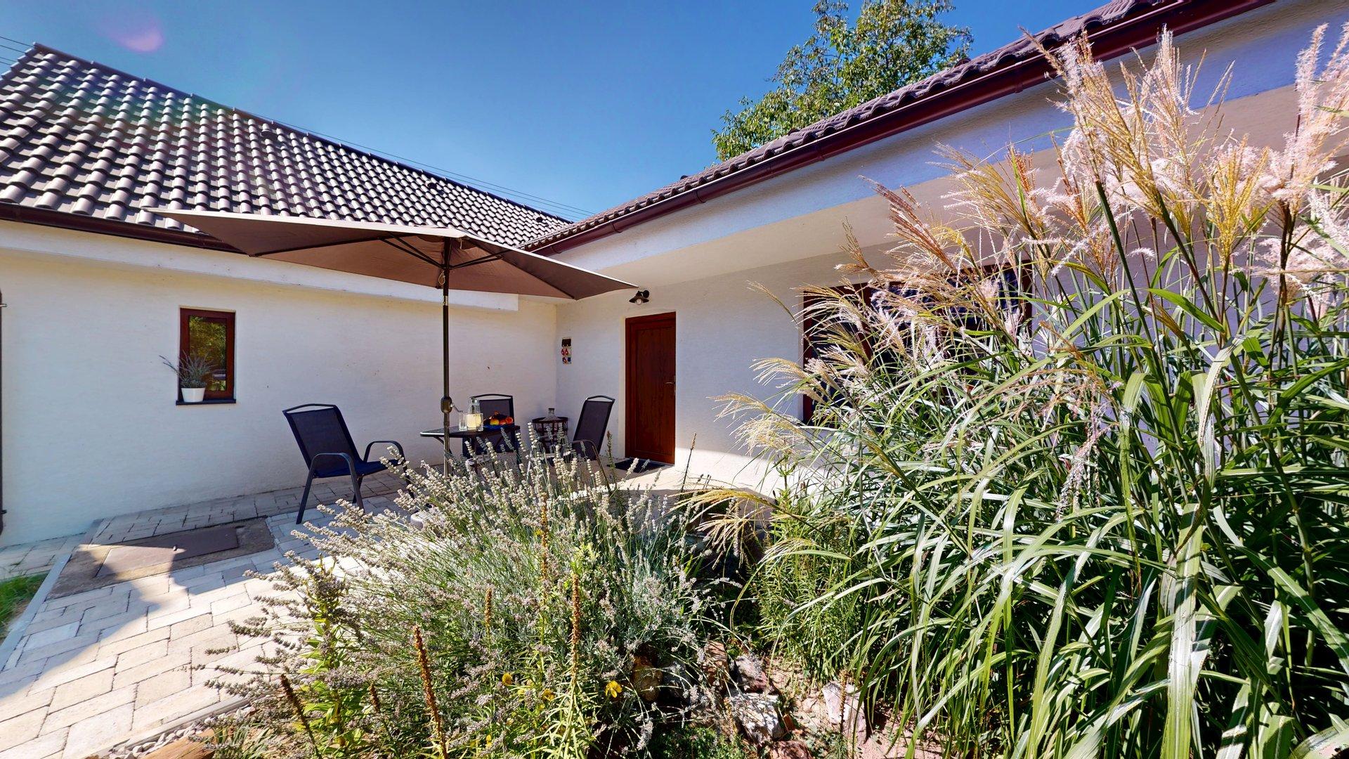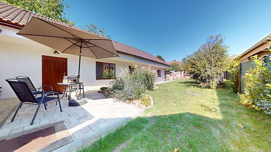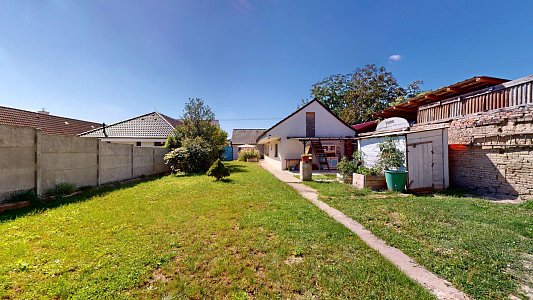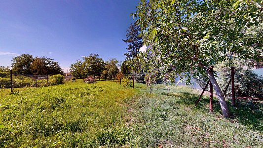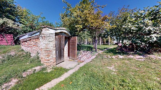 Dom sa rozprestiera na 1 426 m² veľkom pozemku s dvomi terasami, historickou vínnou pivnicou, ovocným sadom, vinohradom, vyvýšenými záhonmi a vlastnou studňou. Všetko dopĺňajú nové chodníky a je možný prístup na pozemok aj zo zadnej časti, pričom zadnú parcelu možno využiť aj ako investičnú na samostatný predaj.